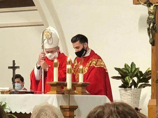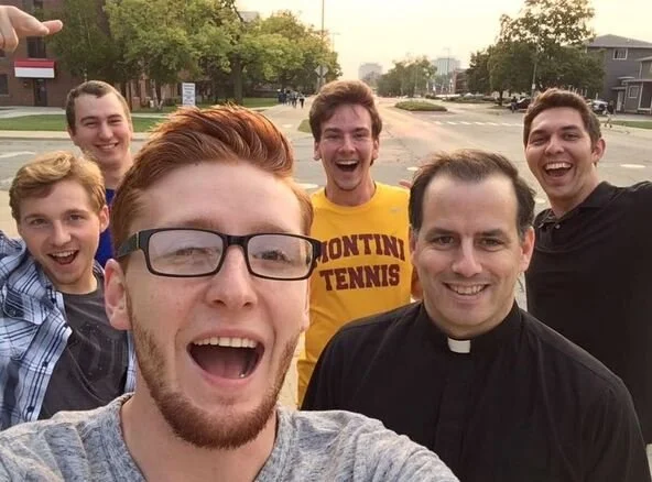 Fr. Kyle Manno was the Pastor at the Newman Center from October of 2020 to May of 2022. He is the fifth pastor who attended NIU as a student and was then assigned as Pastor at the Newman Center! He began his journey working with Msgr. Glenn Nelson in the very office that was his during his time here as pastor! Fr. Manno brought to Newman an energy and fire that lit up the students and the parishioners! His social media presence, "Priest with a Mic" reached far beyond the NIU Campus and the city of DeKalb.