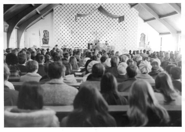 The Knights of Columbus, along with parishioners from St. Mary's, played a very important role in the building of the Newman Center. Councils from around the Rockford Diocese contributed generously so that the Center could be built to serve the spiritual needs of Catholic students at NIU. The first liturgies were celebrated in the new 420 seat chapel in September 1960.