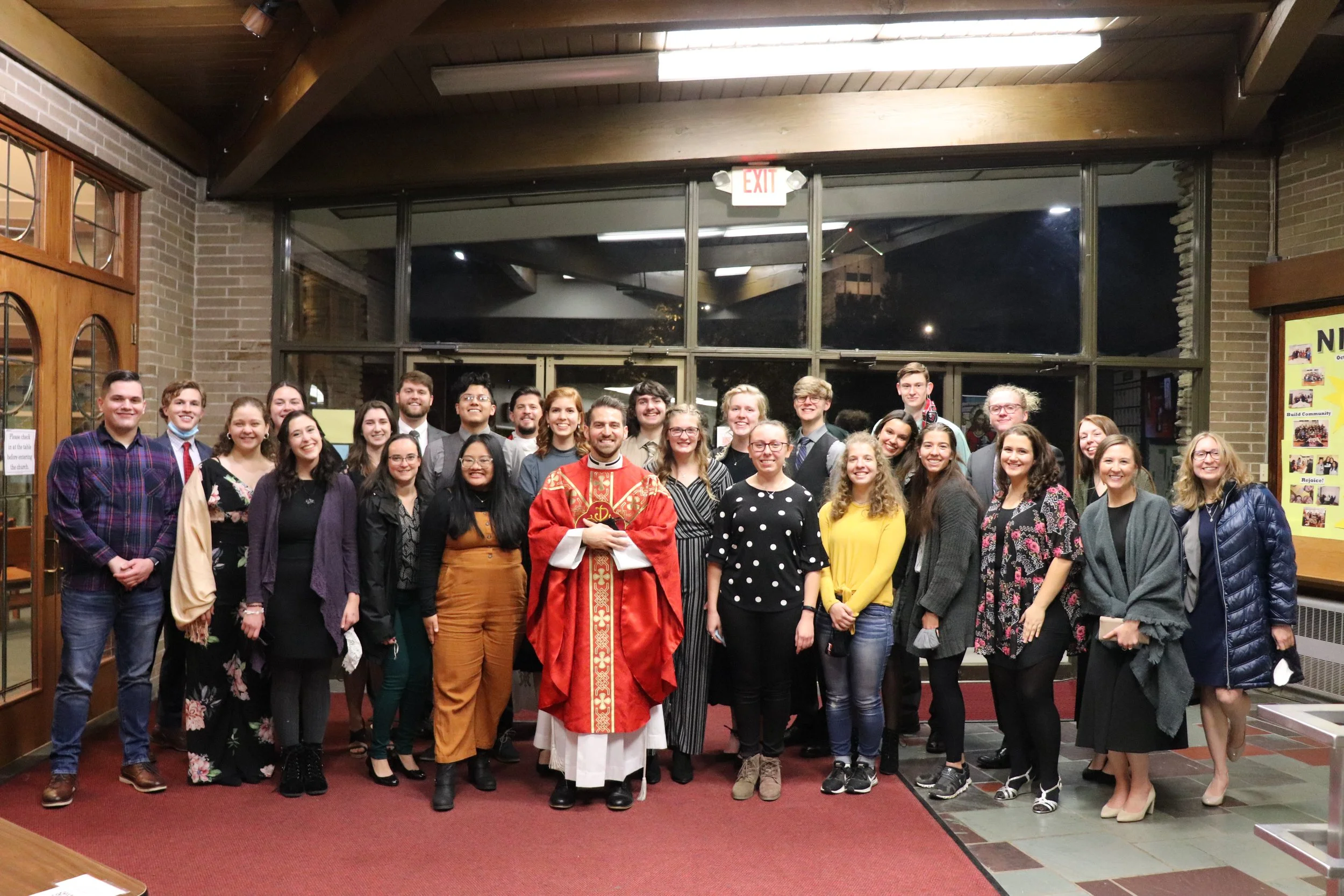 Fr. Matthew McMorrow, another NIU grad, was pastor from 2012 -2019. Fr. McMorrow established the Newman Missionary Team to supplement the evangelical work of the Student Ministry Team. He oversaw the renovation of Newman’s library into the café and coffee bar students enjoy today (the card catalog remains as a memento and conversation piece!) Fr. McMorrow also initiated our student-led Bible study groups, which take place all over campus during the academic year.
