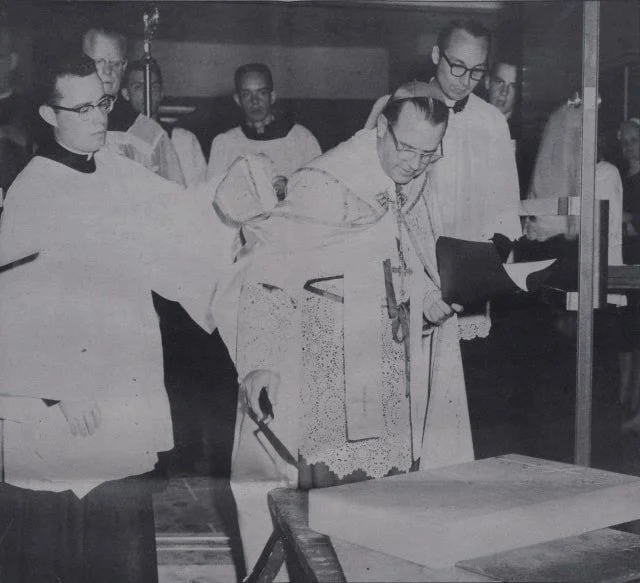 In 1964, Rev. Hubert V. McGinn, Newman's chaplain, announced that ground would be broken in late June to begin the construction of the new educational wing for the Newman Center. Included in the plans for the wing were a book store, a publication room, two classrooms, four offices (two of which would be used for counseling), a seminar conference room to accommodate 150-200 people, and storage space.