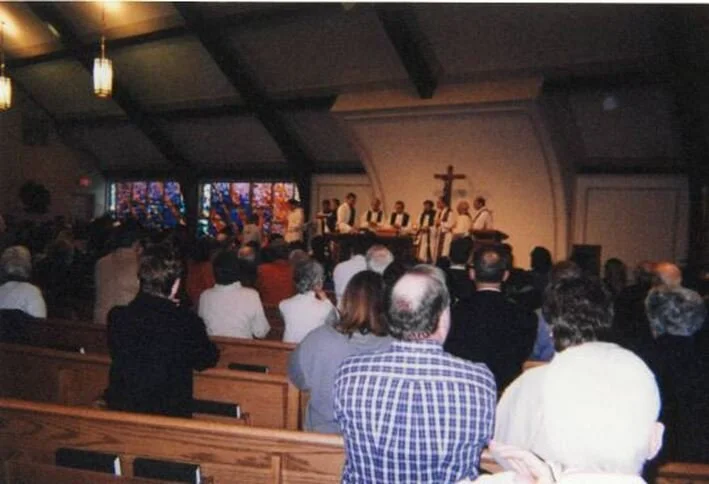 The first Mass was celebrated in the renewed worship space on December 4, 1999. That evening, 320 people gathered to attend 4:30 Mass and then celebrate at Newman's 39th annual Benefit Dinner. In attendance was Fr. McCarren, who had bought the College Avenue Newman Center house with the help of a loan from his mother in 1951.